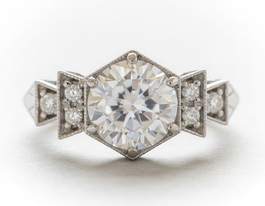 Beautiful Florence engagement ring with brilliant DE white moissanite or Lab Diamond. Vintage-inspired design, conflict-free, affordable luxury. Perfect for proposals & anniversaries.